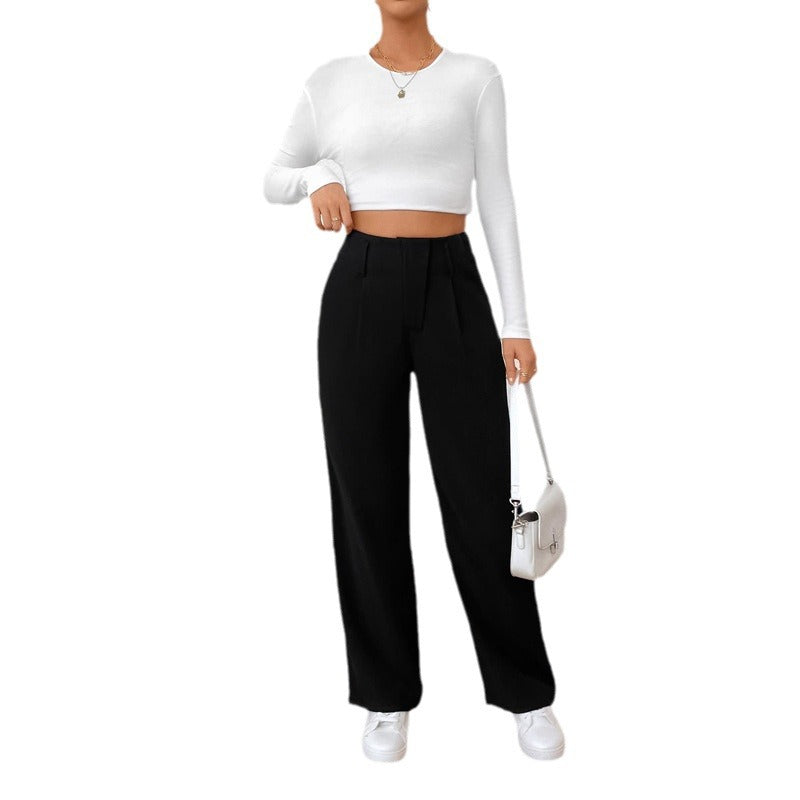 - Elegante Details: Die Faltenlegung und die hohen Taschen verleihen der Hose eine raffinierte Note und machen sie zu einem echten Hingucker.