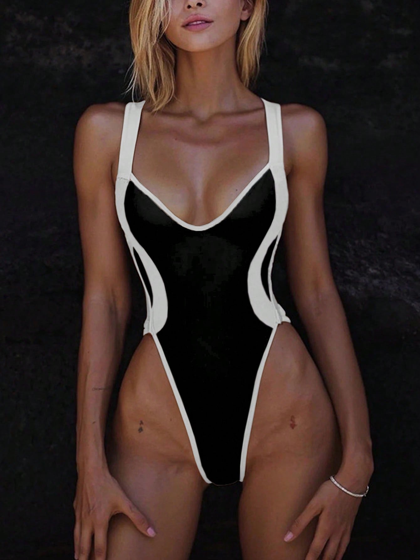 Discover our women's high-cut one-piece swimsuit with contrast stitching from W&W, which perfectly combines elegance and comfort. This swimsuit will quickly become your favorite for beach days or pool parties.