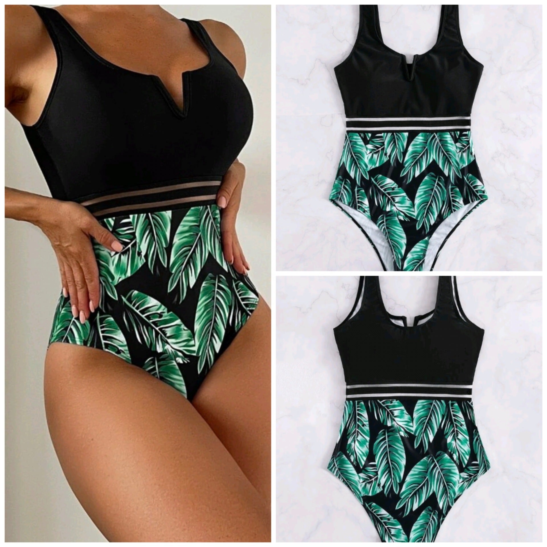 - Stylisches Blattmuster: Das auffällige Blattdesign bringt einen frischen, sommerlichen Look in Ihre Bademode-Kollektion.