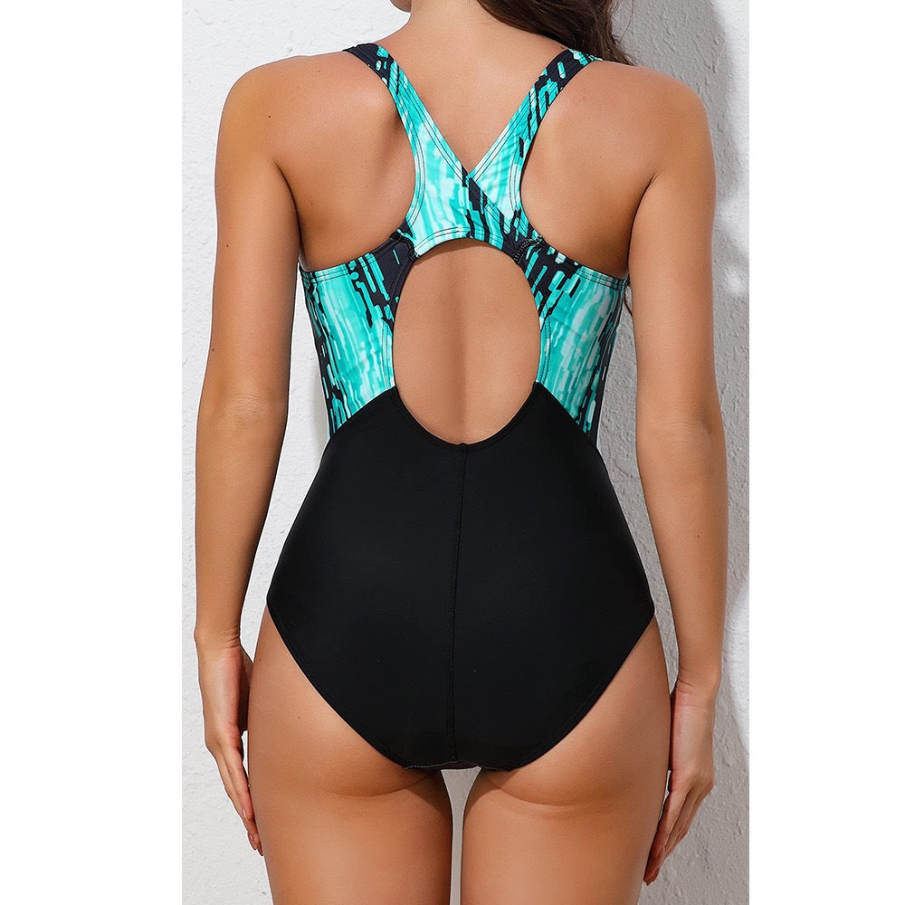 WW | Damen Sportlicher Einteiler Badeanzug mit bunten Akzenten