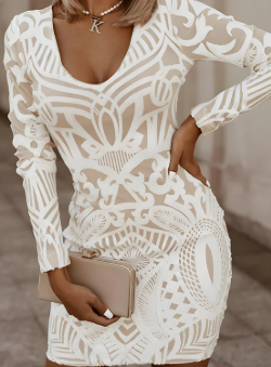 Mit seinem strukturierten Muster und dem femininen V-Ausschnitt ist dieses Bodycon-Kleid ein echter Blickfang. Der figurbetonte Schnitt betont deine Kurven perfekt und macht es zur idealen Wahl für elegante Anlässe, Dinner-Dates oder Partynächte.
