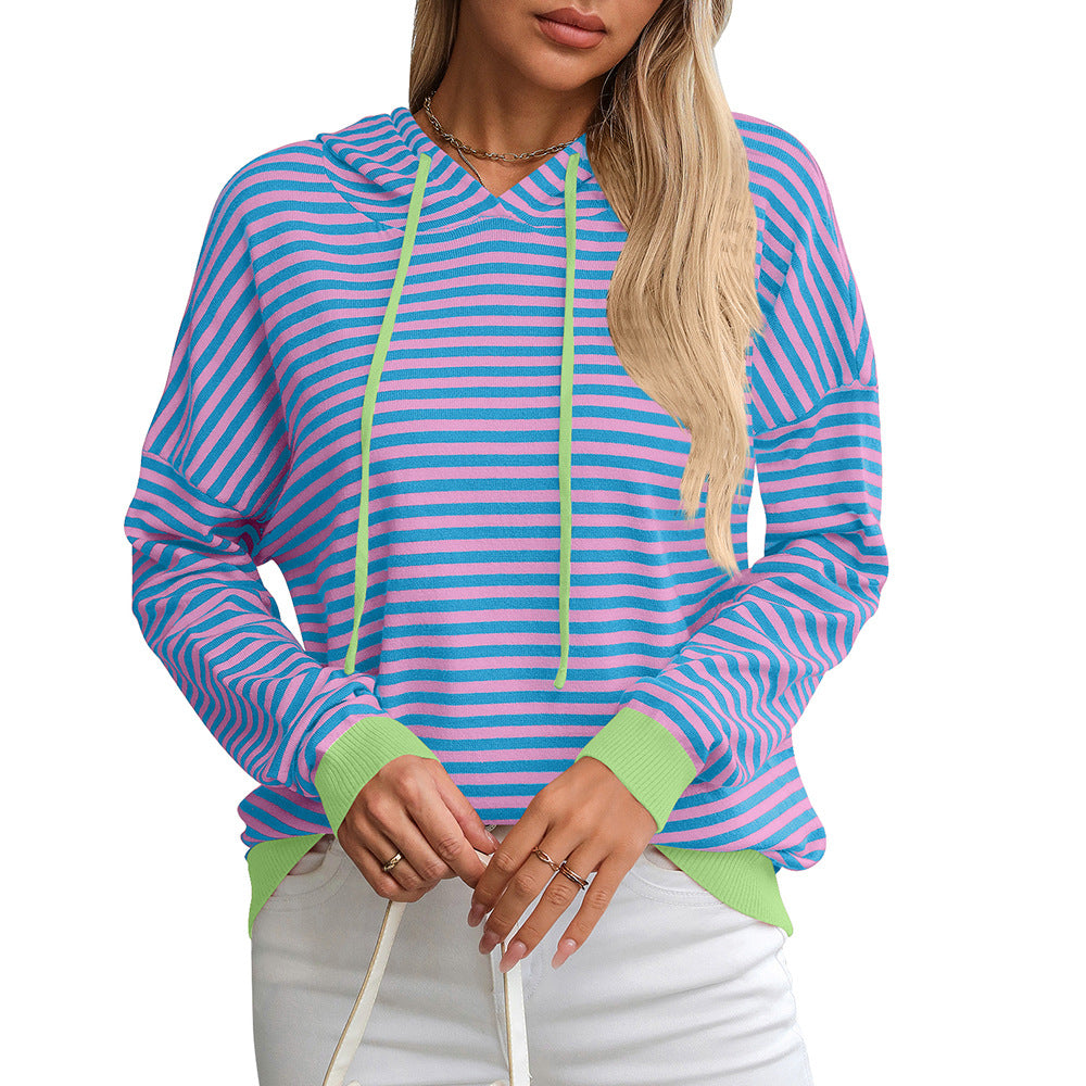 Damen gestreifter Hoodie mit lässigem Schnitt und kontrastierenden Details WW