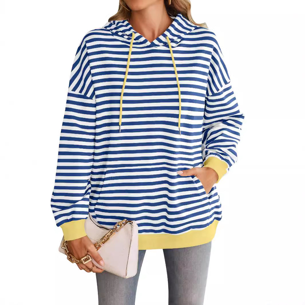 Damen gestreifter Kapuzenpullover mit stylischer Kängurutasche WW