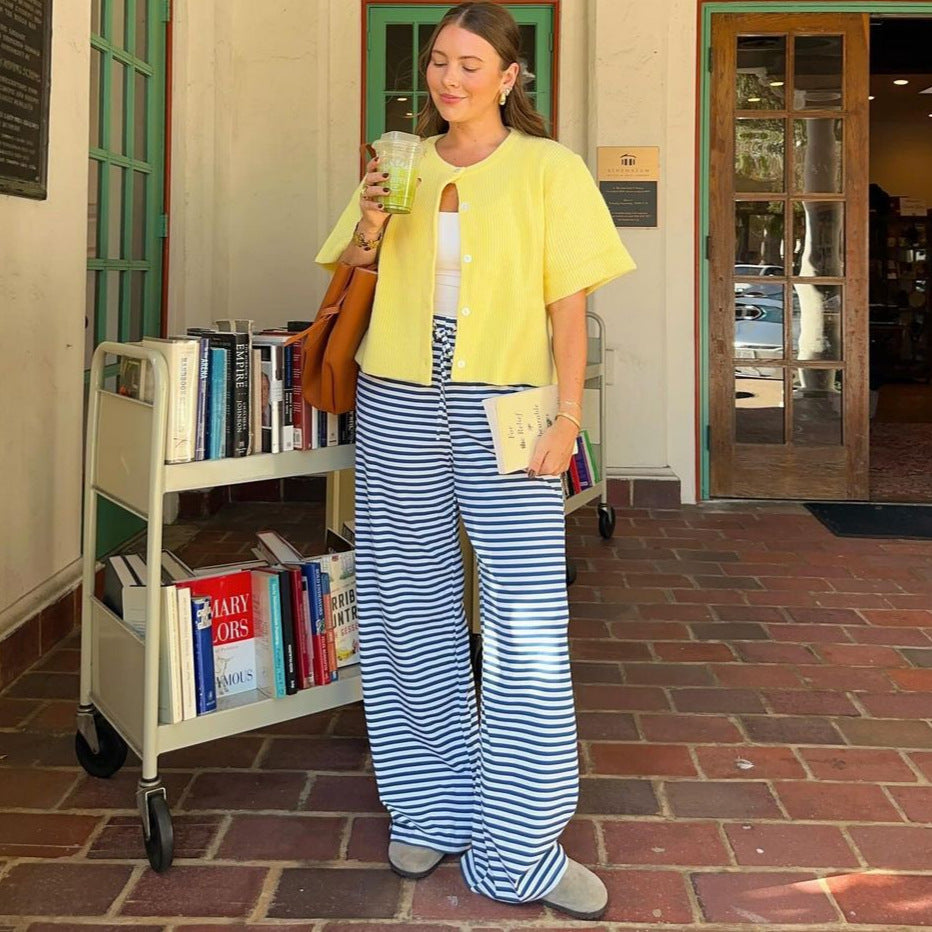 SStephanie KVerified BuyerBequem & stylischSehr angenehm zu tragen und sieht dabei extrem gut aus. Klare Empfehlung.Damen weite Streifenhose mit elastischem Bund und Kordelzug WW Was this helpful? 0 0