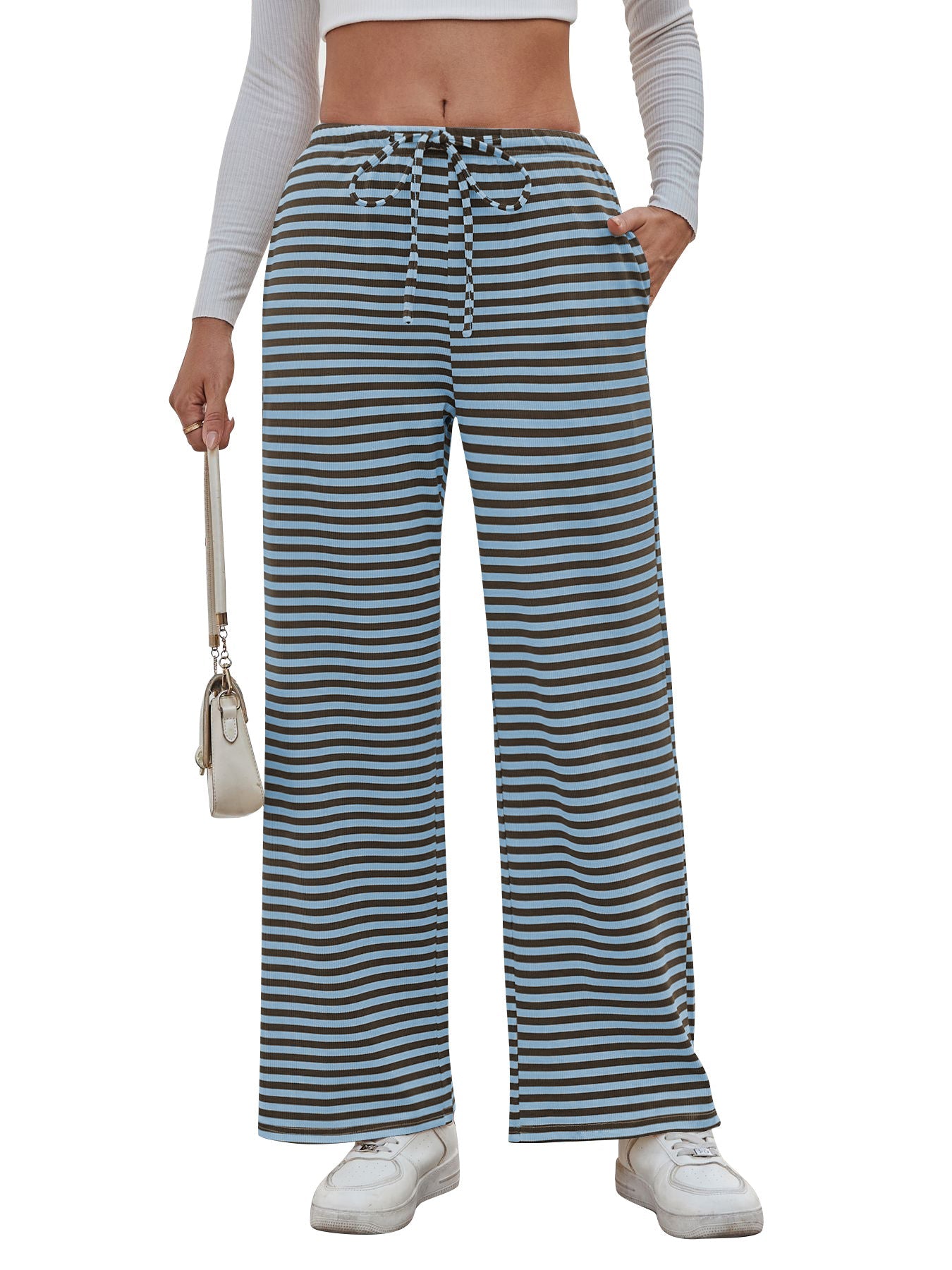 Damen weite Streifenhose mit elastischem Bund und Kordelzug WW