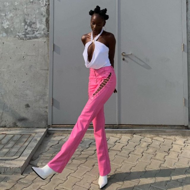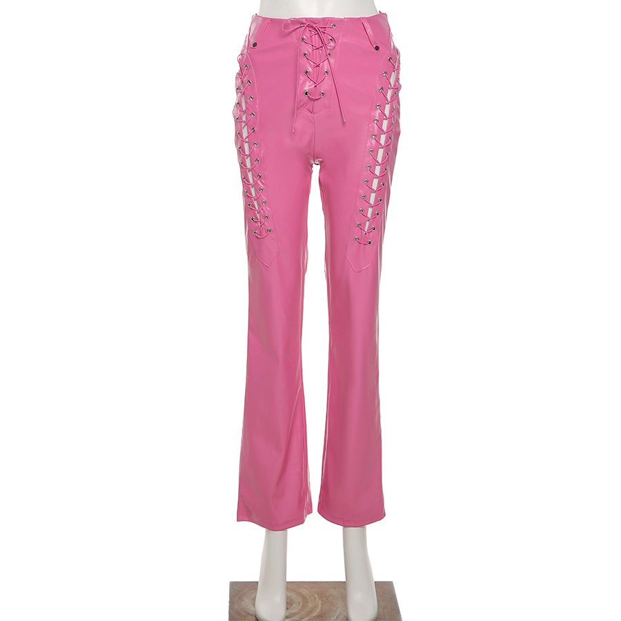 Hoch geschnittene Lederhosen sind ein essentielles Modeelement, das zeitlos bleibt. Diese trendigen Hosen bieten sowohl Langlebigkeit als auch hohen Tragekomfort. Mit einem schicken Kreuzschnürdesign versehen, das Ihrer Garderobe eine elegante Note verleiht. Die einfarbige Gestaltung macht sie zu einer vielseitigen Wahl, die ganz mühelos von Tages- zu Abendmode wechselt.