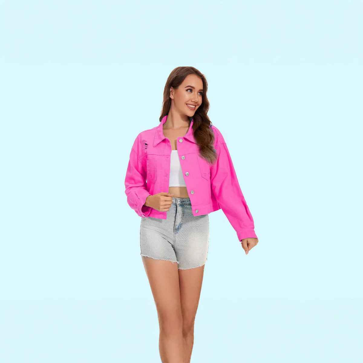 Ob für den Alltag oder besondere Anlässe, diese Jeansjacke ist vielseitig und leicht kombinierbar. Kombinieren Sie sie mit einem lässigen T-Shirt und Shorts für ein entspanntes Sommeroutfit oder tragen Sie sie über ein schickes Kleid für einen attraktiven Kontrast. Holen Sie sich diesen modischen Begleiter noch heute!