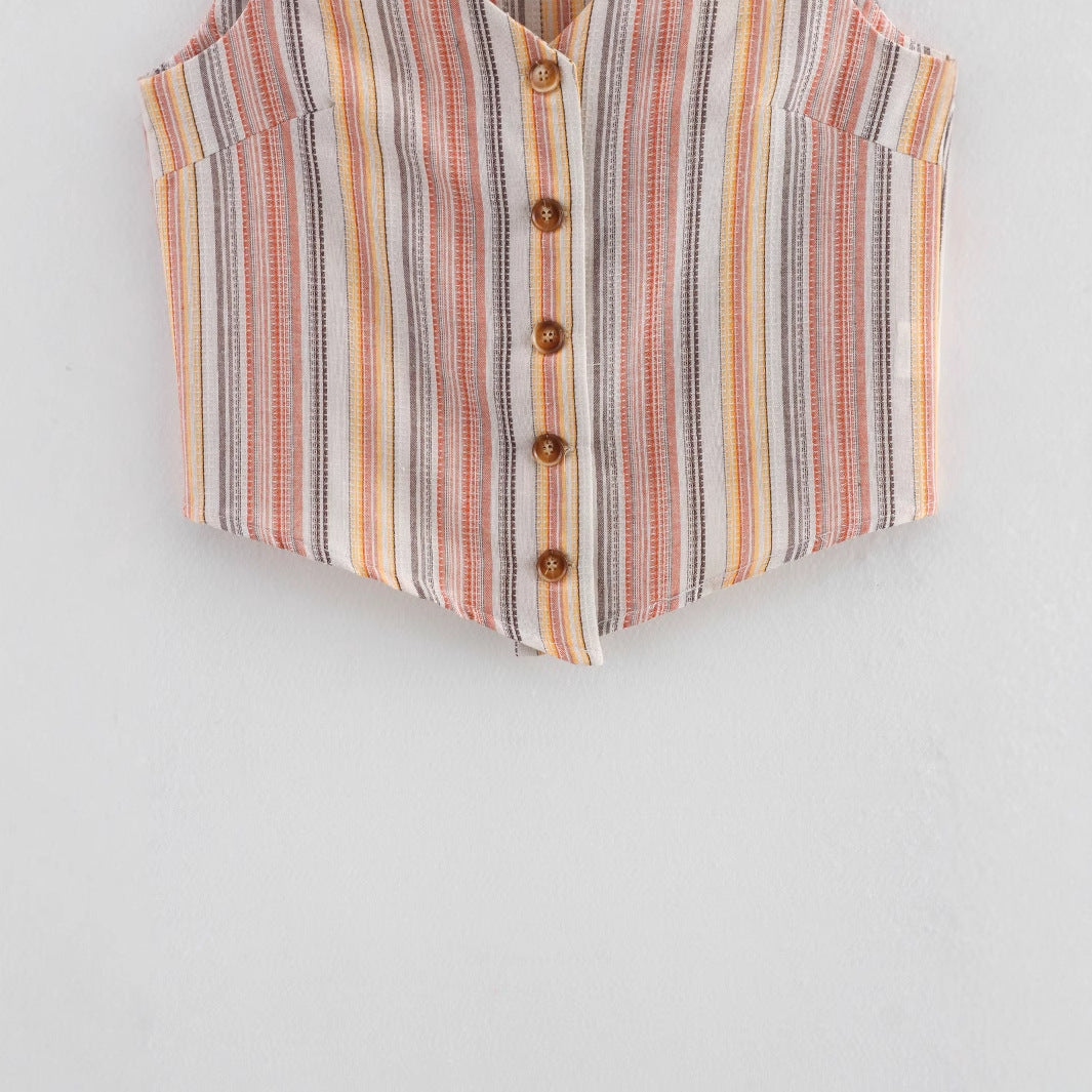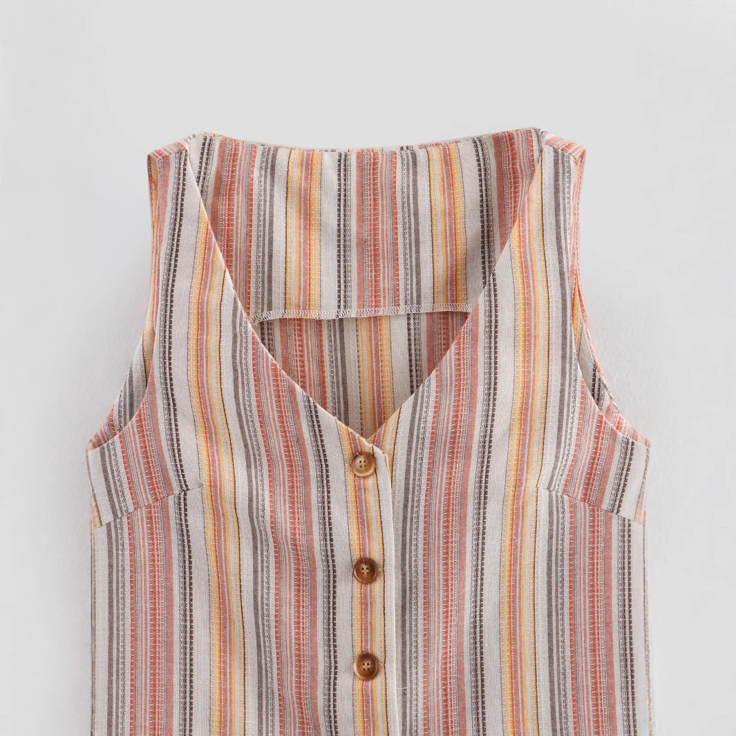 Damen ärmellose Bluse mit V-Ausschnitt und stilvollem Streifenmuster WW