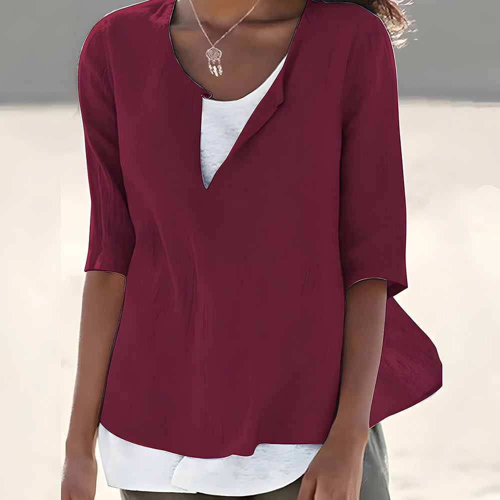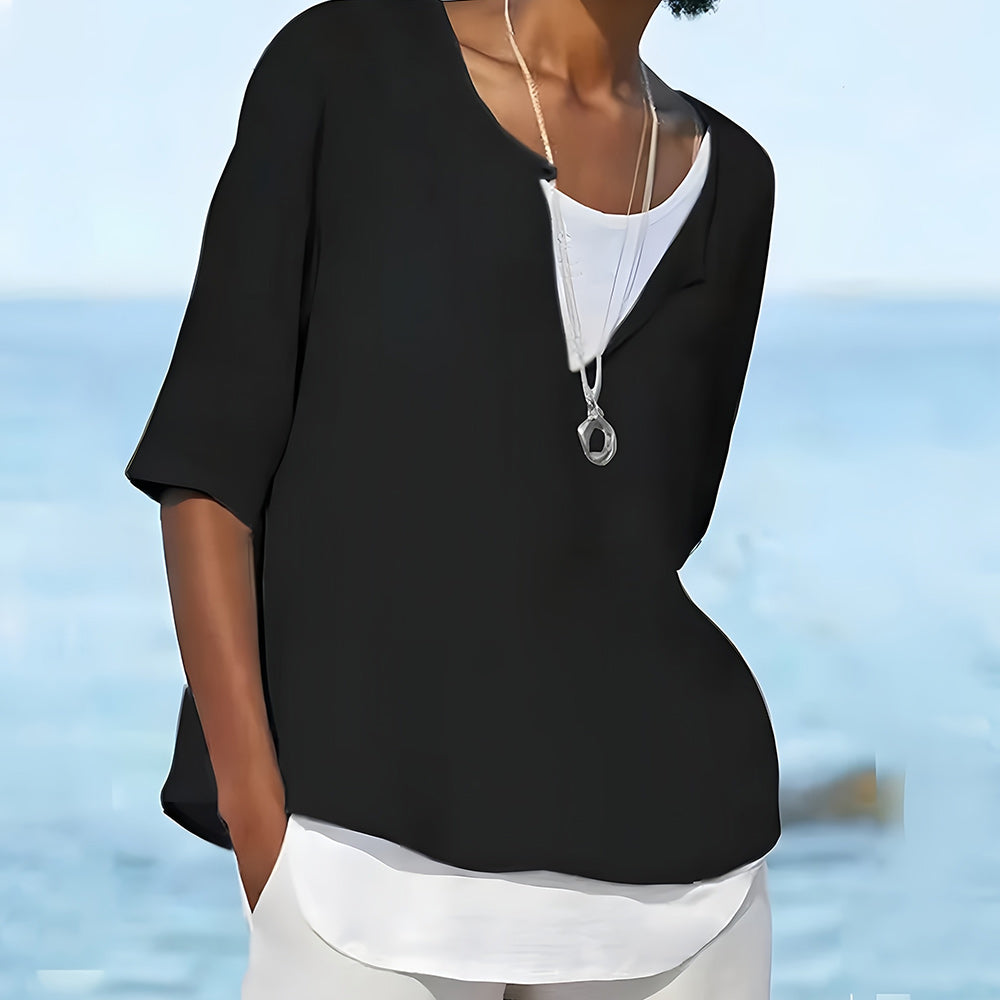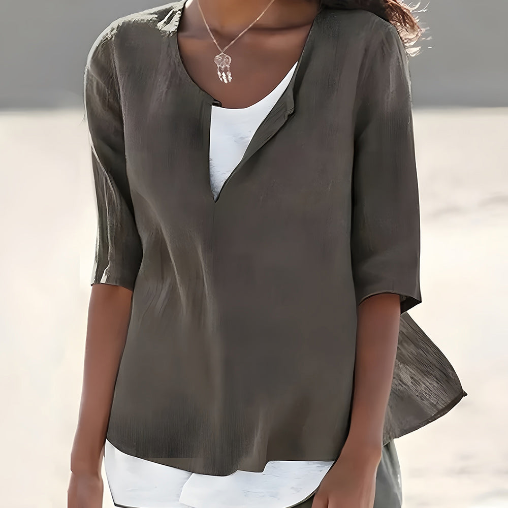 WW | Stilvolles, halbärmeliges Damenoberteil aus Baumwolle und Leinen