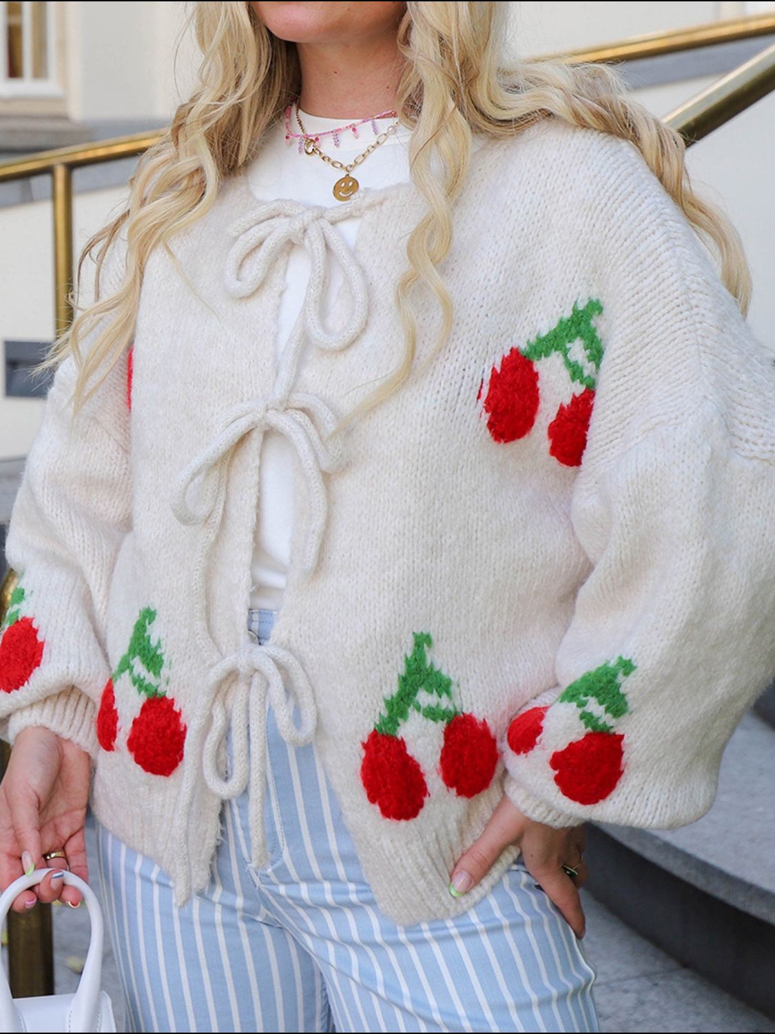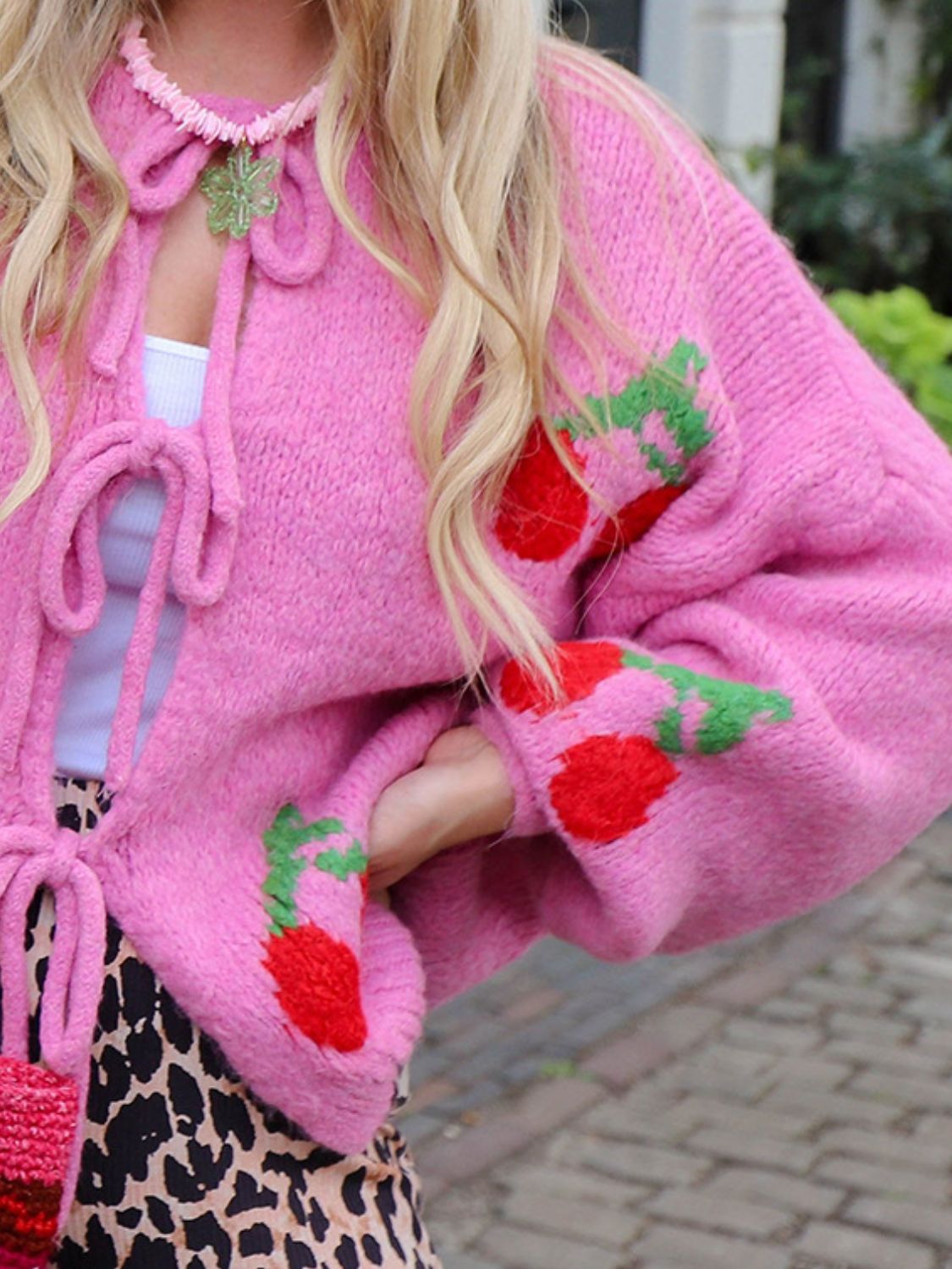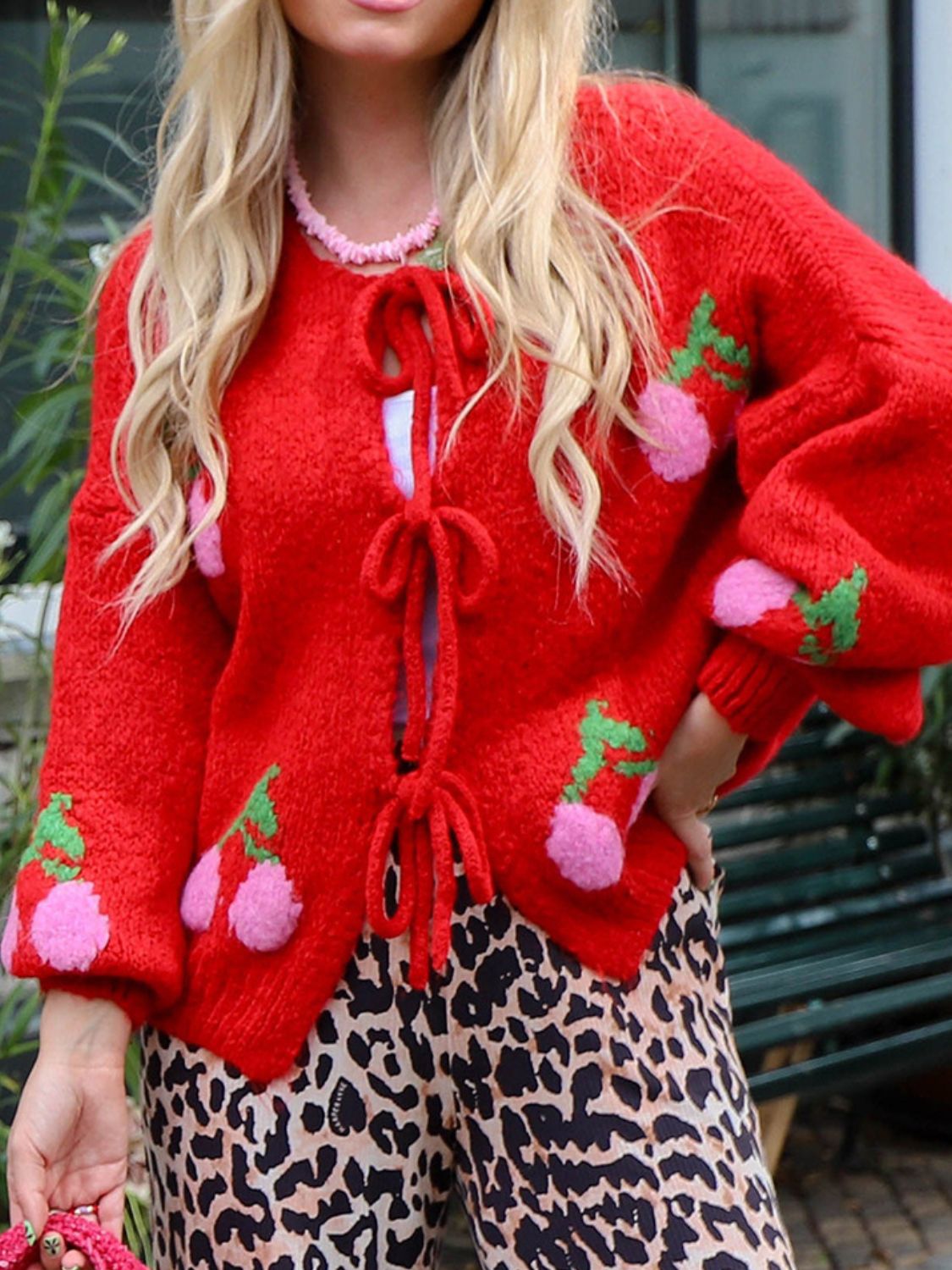 WW | Gebundene Kirsche Rundhalsausschnitt Langarm Cardigan